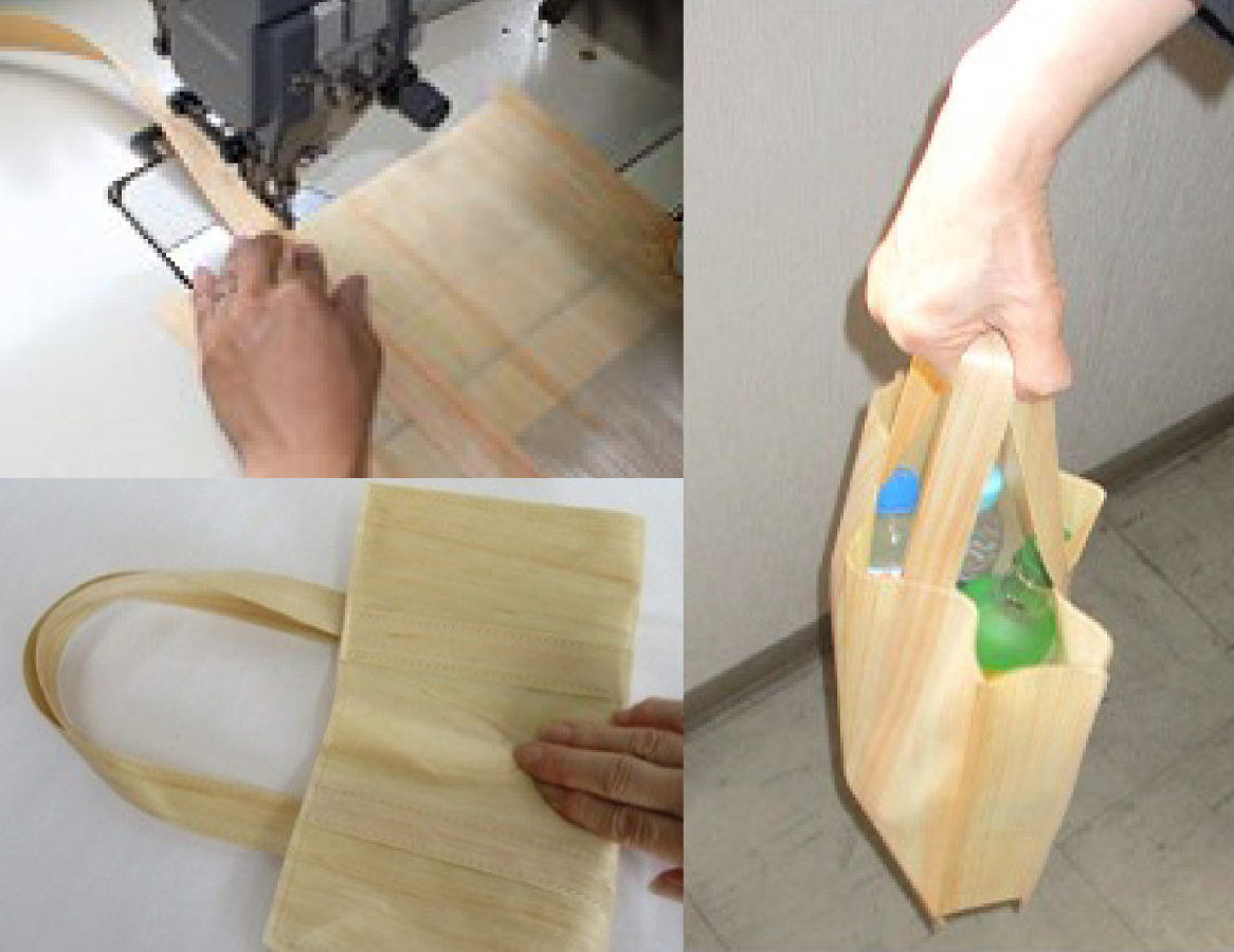 森シリーズは同社が開発した特殊技法で「木を柔らかくし、ミシンで縫える木で製作した商品です。全て天然の木(間伐材を含む)を使用し、環境に配慮したエコ商品です。持続可能な開発目標であるSDGsが世界で取り上げられている中、その目標の中で「12 つくる責任 つかい責任」、「15 陸の豊かさも守ろう」に取り組んでいる商品です。サステイナブルな素材を使用したこれらの商品はほのかな木の香りがし、バックについては全自洗濯機で数十回の洗濯脱水にも耐え、約5~7kgのものを入れることも可能です。